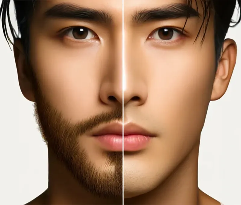 | 가늘고 적은 수염 | 수염 굵기 얇음 밀도 낮음 |