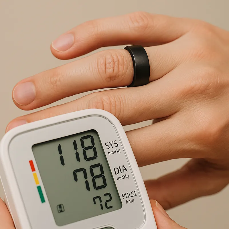 하지만 갤럭시 링과 오우라 링은 수면 상태 심박수 활동량 같은 웰니스 지표 중심 기기이며 의료기기 혈압 측정과는 목적과 기준이 전혀 다릅니다. 그리고 이미 병원에서 FDA 승인과 식약처 허가를 받아 실제 진료에 사용되는 진짜 혈압 측정 반지가 존재합니다.
